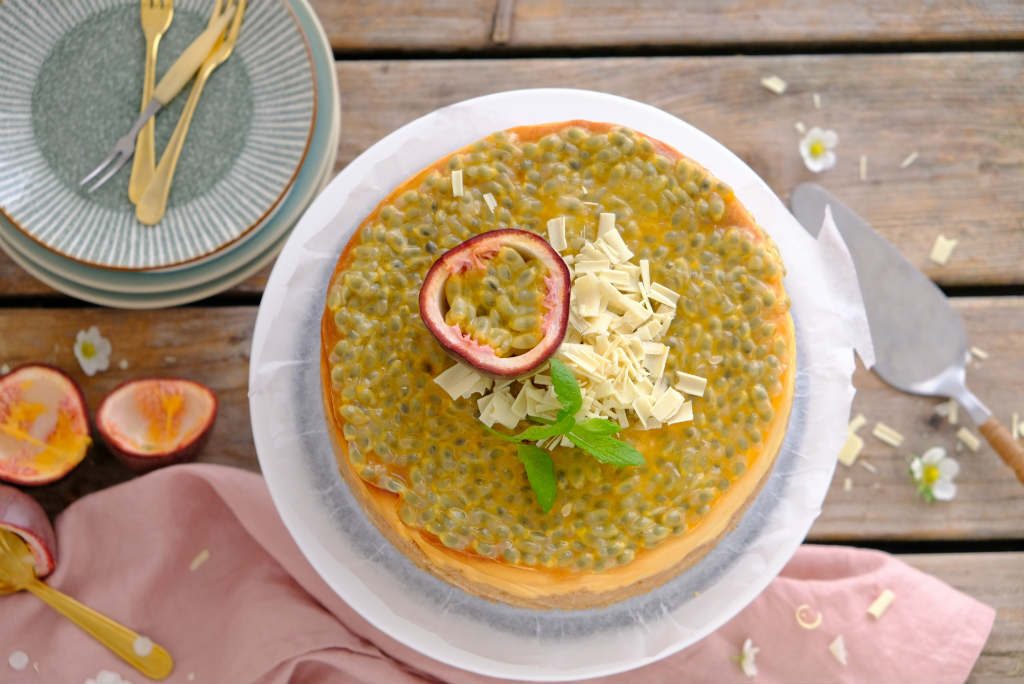 Witte chocolade cheesecake met passievrucht