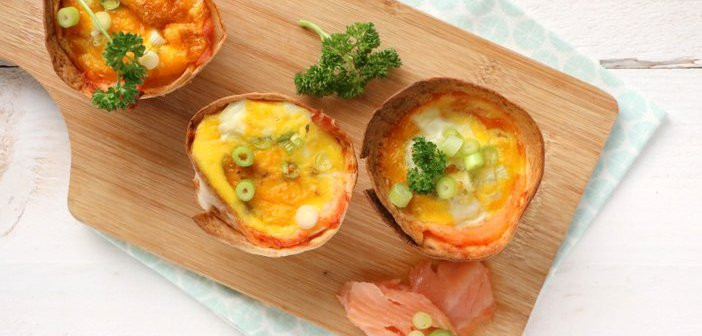 Dat vooruit werken betekent ook dat ik lekker veel de keuken in mag deze weken. Geen straf hoor, ik vind het heerlijk... Mijn to make lijst met recepten is ongeveer eindeloos, dus ik heb me tot nu toe prima vermaakt. Ik merk dat ik het vooral erg leuk vind om ontbijtrecepten te bedenken, en ik wilde nog steeds eens een variatie maken op de ei muffins die al op de blog staan. Zalm en ei vind ik een heerlijke combinatie, weet je nog die gevulde avocado's? Dat idee, maar dan in een muffin, en dan nog in een volkoren wrap. Prima manier om de dag mee te starten, als je het mij vraagt!