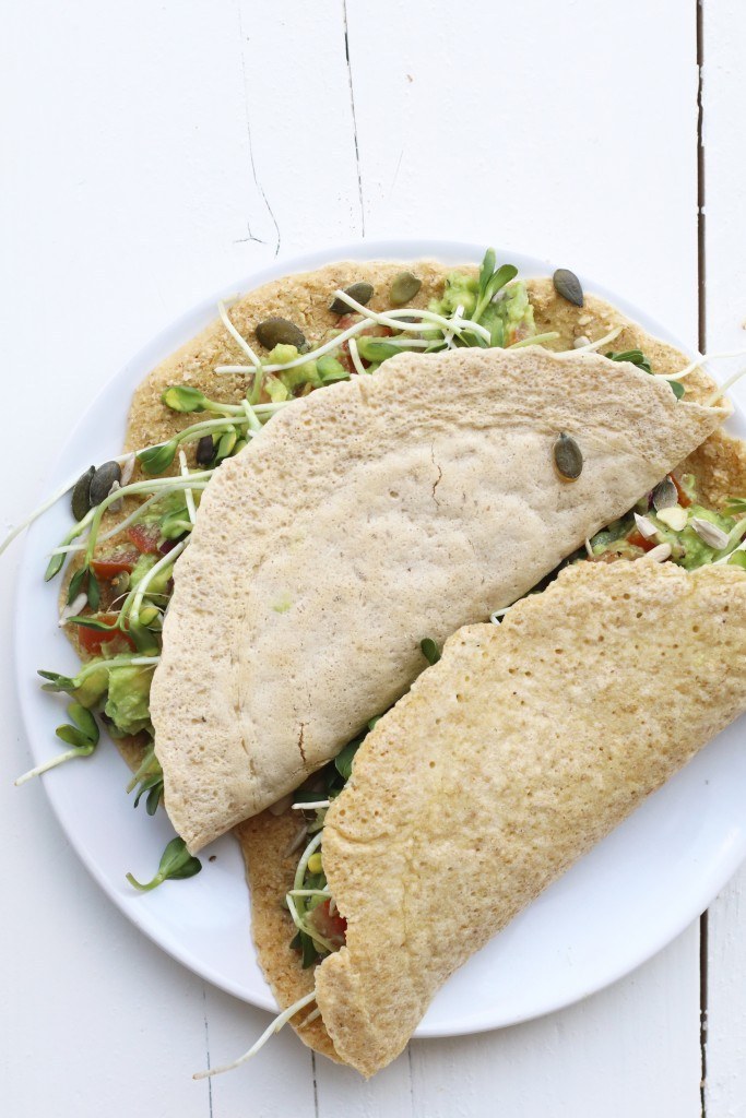 Niet de kant en klare wraps uit de winkel maar gezonde wraps van havermout die je heel makkelijk zelf maakt. Ik vul ze met van álles. In de ochtend met notenpasta en banaan en ’s middags stop ik ze vol gegrilde groenten en geitenkaas. De wraps geven je door de havermout een vol gevoel en ze zijn makkelijk mee te nemen voor onderweg. Ik maak aan het begin van de week altijd een voorraadje voor drie dagen zodat ik niet elke ochtend aan het bakken ben. Op dit moment is mijn favoriete vulling een snelle guacamole met zonnebloempitten. Heerlijk! En ook nog eens super gezond.