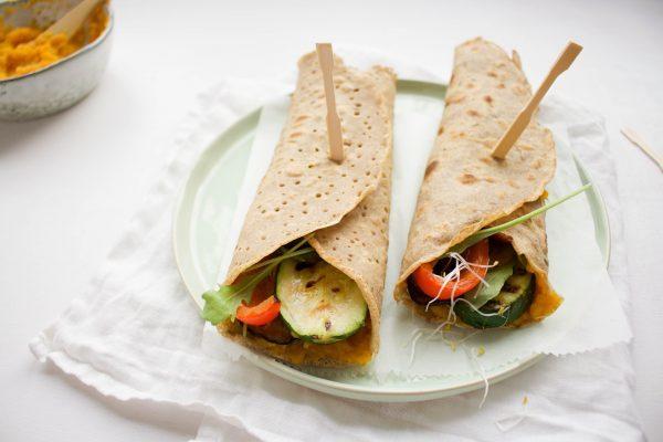 Je kunt natuurlijk kant en klare wraps uit de supermarkt gebruiken, maar gezonder en lekkerder is natuurlijk om deze zelf te maken. Houd je niet zo van boekweit? Dan kun je ook volkoren speltmeel gebruiken. Voor de spread kun je in plaats van pompoen ook zoete aardappel gebruiken. Net wat je lekkerder vindt.