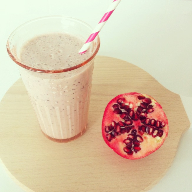 Geitenyoghurt of biogarde roeryoghurthandje blauwe bessenhalve granaatappel (hele kan ook)lijnzaad en chiazaad (optioneel)