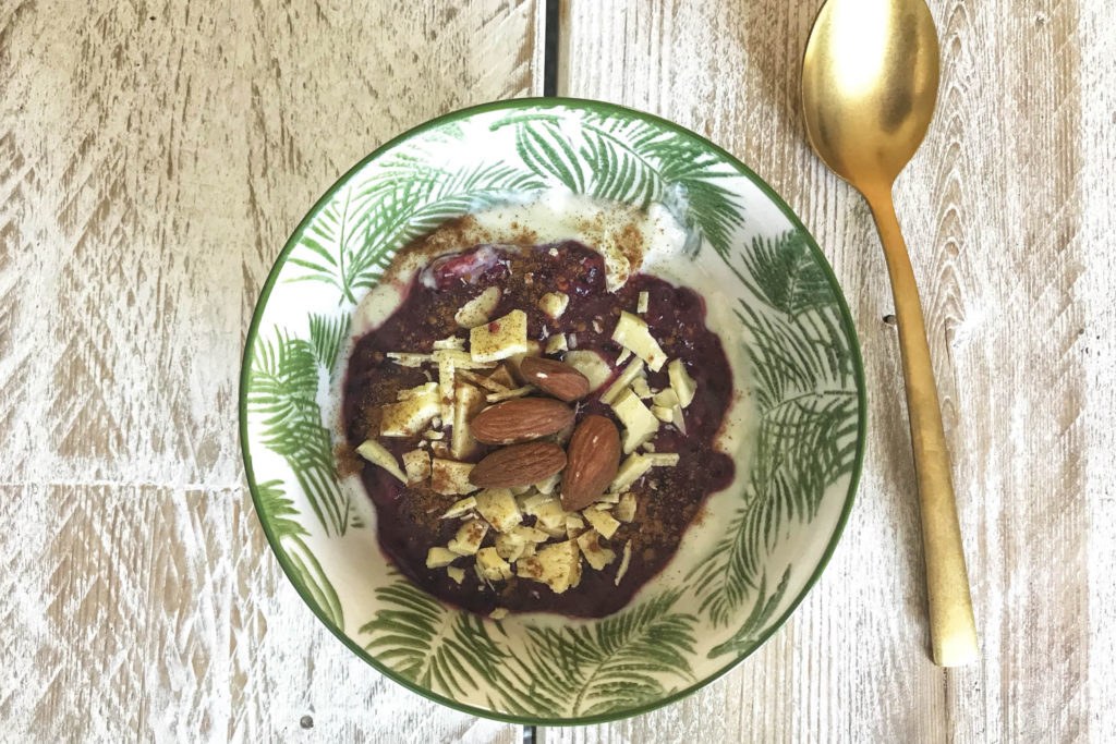 Gezond, afwisselen met af en toe een minder gezonde hap, dat is waar we bij ILH in geloven. Of zoals ik het doe, een gezonde hap zo nu en dan combineren met een iets minder gezond ingrediënt. Een salade met bijvoorbeeld een heerlijke lepel mayo er door heen in plaats van een ‘magere’ dressing. Of wat dacht je van wat witte chocolade over een oh zo gezond bessen bowltje? Een mega lekkere combi. En eigenlijk alsnog best wel gezond en verantwoord. Dit fijne receptje, wat ik eigenlijk per toeval, door gewoon een beetje te experimenteren, heb ontdekt. Hoe vind jij ‘m?