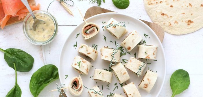 Volgend weekend vieren we groot feest, want er zijn binnenkort maar liefst 2 jarigen in huis. Eerst is Simon aan de beurt, en 2 dagen later is Lise jarig. Goed getimed hè...! Dat moet natuurlijk worden gevierd, en bij een feestje horen lekkere hapjes. Het liefst een hele tafel vol, want ik hou ervan om een feestje uitbundig te vieren. Maar waar ik geen zin in heb, en waar het uiteindelijk toch wel vaak op neerkomt, is om de dag van tevoren urenlang in de keuken te staan. Soms moet je helemaal niet zo moeilijk denken, en zijn de simpele hapjes het lekkerst. Zo ook bijvoorbeeld deze zalm wrap met honing mosterd saus. Die snij je in kleine stukjes et voila!