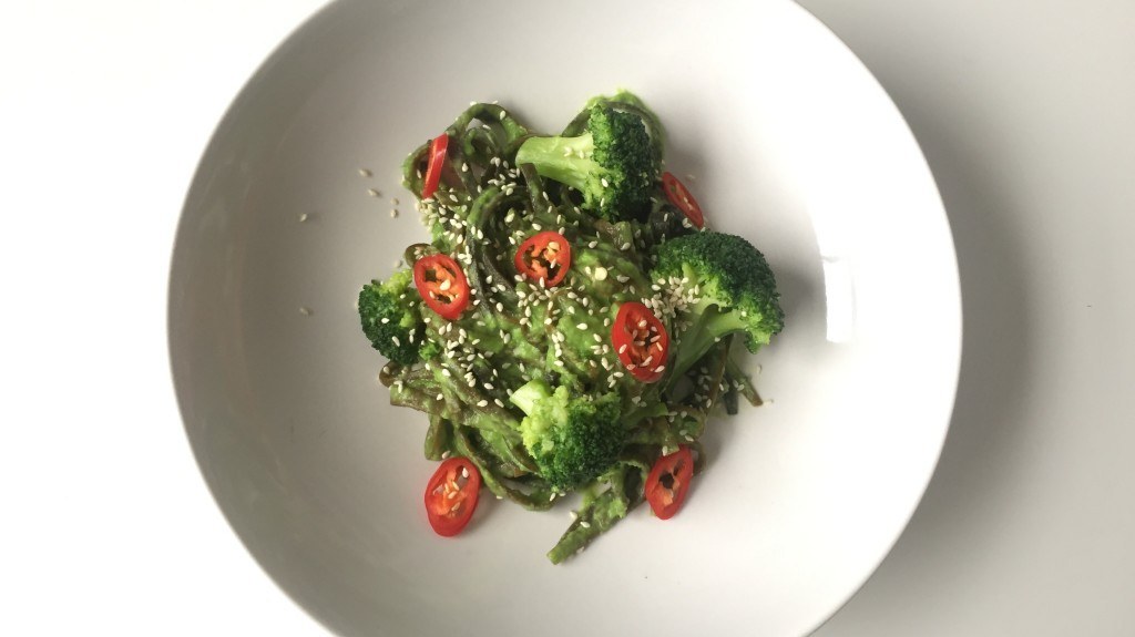 Onlangs schreef ik al een artikel over zeewier als het eten van de toekomst. Want zeewier is super duurzaam en ook nog eens heel gezond. Het is een bron van eiwitten, zit bomvol vezels, vitamine B en mineralen als ijzer, jodium en calcium. Hello superfood! Startup Seamore bracht deze herfst "I Sea Pasta' op de markt: zeewier vermomd als tagliatelle. Oftewel 100% zeewier dat eruit ziet en smaakt als pasta, maar dan met veel minder koolhydraten en calorieën. Dat moest ik natuurlijk proberen, daarom vandaag meteen een recept: zeewier pasta met een saus van doperwten, broccoli met pit van rode peper en sesam.