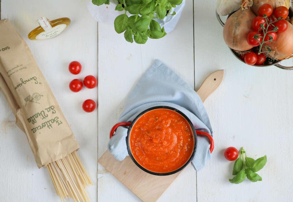 Nu staan er in mijn voorraadkast ook gewoon blikken tomaten en flessen passata. Altijd handig om in huis te hebben en in een handomdraai een gerecht op tafel te zetten. Alleen is de zelfgemaakte pastasaus van een heel ander niveau. Puurder en zoeter van smaak. Je zou bijna alleen de tomatensaus met verse pasta eten. Zo goed is deze van smaak.