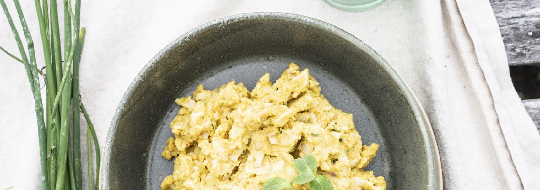 Dit recept voor vegan eiersalade komt uit het kookboek Green Yourself van Brenda Bas. Een boek vol recepten uit de natuur die je kunt maken met de (hoge snelheids)blender. Blend it away!