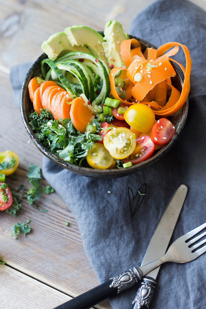 Green is altijd goed! Je kunt kiezen uit verschillende bladgroenten. Denk hierbij aan: spinazie, boerenkool, verschillende soorten sla, snijbiet, rucola, kool en kiemen.