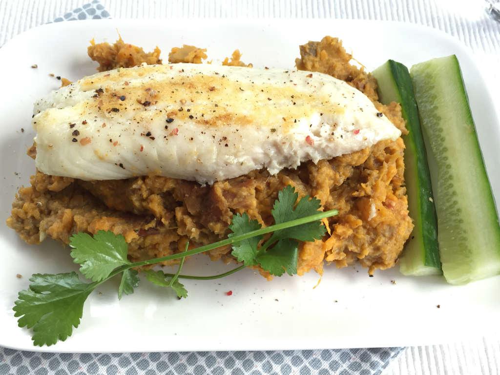 Door de detox word ik aangespoord om meer vis te eten. Vaak klinkt vis bereiden heel ingewikkeld en eigenlijk stelt het niks voor. Bij een vriendin had ik ooit de combinatie kabeljauw met aubergine puree gegeten, als onderdeel van een uitgebreid diner. Nu voor een makkelijke avondmaaltijd zocht ik nog goede koolhydraten om de maaltijd compleet te maken. De smaak van zoete aardappels past goed bij de neutrale smaak van de witte vis en de romige textuur van de aubergine puree.