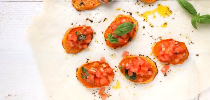 Voor iemand die niet van tomaat houdt... is dit best een bijzonder recept. Als je mijn blog al langer volgt, dan weet je wellicht dat ik niet zo erg veel waardering kan opbrengen voor een tomaat. Ik vind de smaak te zuur, en de structuur niet prettig. Heb je goed opgelet, dan weet je dat ik in maar heel erg weinig recepten een tomaat toevoeg. Nee, hoor, daar schaam ik me niet voor. Heel af en toe sta ik ze toe in mijn keuken, en dan zijn ze meestal welkom omdat ik een Italiaans recept klaar maak. Want wat is de Italiaanse keuken zonder pomodori? Juist, helemaal niets, En daarom maak ik voor deze zoete aardappel bruschetta met tomaat een uitzondering.