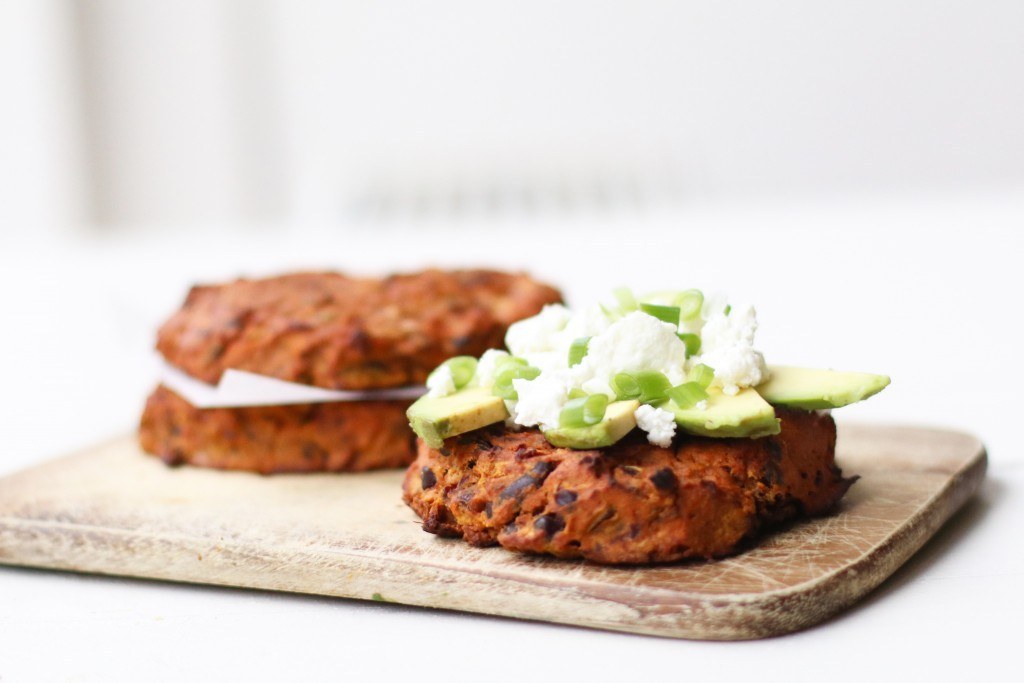 Deze week houd ik een ode aan de zoete aardappel! Waarom? Omdat ik zó gek van op deze zoete bataat en je hem op duizend en een manieren kunt bereiden. Het is een gezond, goedkoop en lekker ingrediënt en eigenlijk moet je er altijd een paar op voorraad hebben. Deze week komt er elke dag een recept met zoete aardappel online en het eerste recept is een zoete aardappel burger met avocado en lente ui. En met een beetje geitenkaas voor de liefhebber..