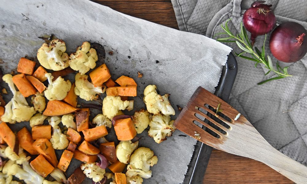 Omdat ik graag eens een nieuwe combinatie wilde uitproberen, ging ik voor zoete aardappel en bloemkool. Ik gaf er een frisse touch aan door citroen en rozemarijn toe te voegen, en voor extra smaak een teen knoflook. Lekker dat het werd! De ene dag at ik het zo, en de volgende dag bakte ik er een heerlijk hertenbiefstukje bij. Toen heb ik lekker even een partijtje zitten genieten in m’n eentje, en ik hoop natuurlijk dat jij dat ook doet =)