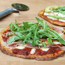- Tomatensaus, hüttenkäse, gerookte kip, avocado en rucola (koud beleggen).