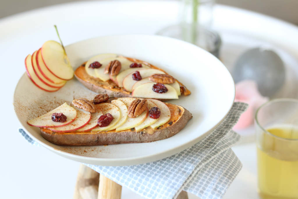 Goedemorgen. Ken je de zoete aardappel wafels nog van een jaartje terug voor het ontbijt? Dit is een ander ontbijt met dit knolletje: zoete aardappel toast met appel en pindakaas. Door de groente te grillen, maak je er toast van als vervanger voor brood. Het grillen zorgt ervoor dat de zoete smaak extra wordt benadrukt. De pindakaas zorgt voor een fijne hartige balans en de appel maak het ontbijt zo lekker fris. Duik vervolgens de voorraad in op zoek naar noten en gedroogd fruit.