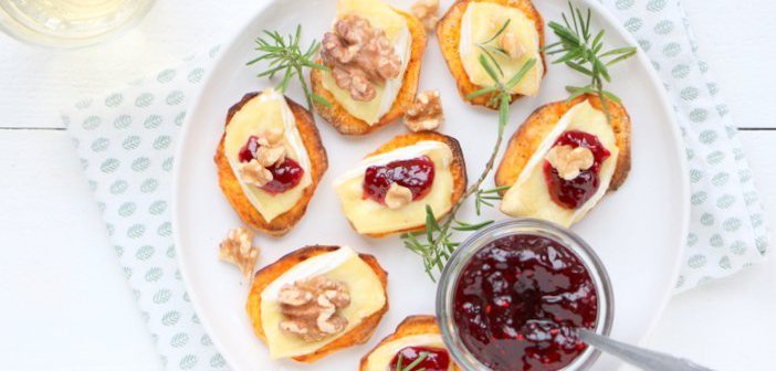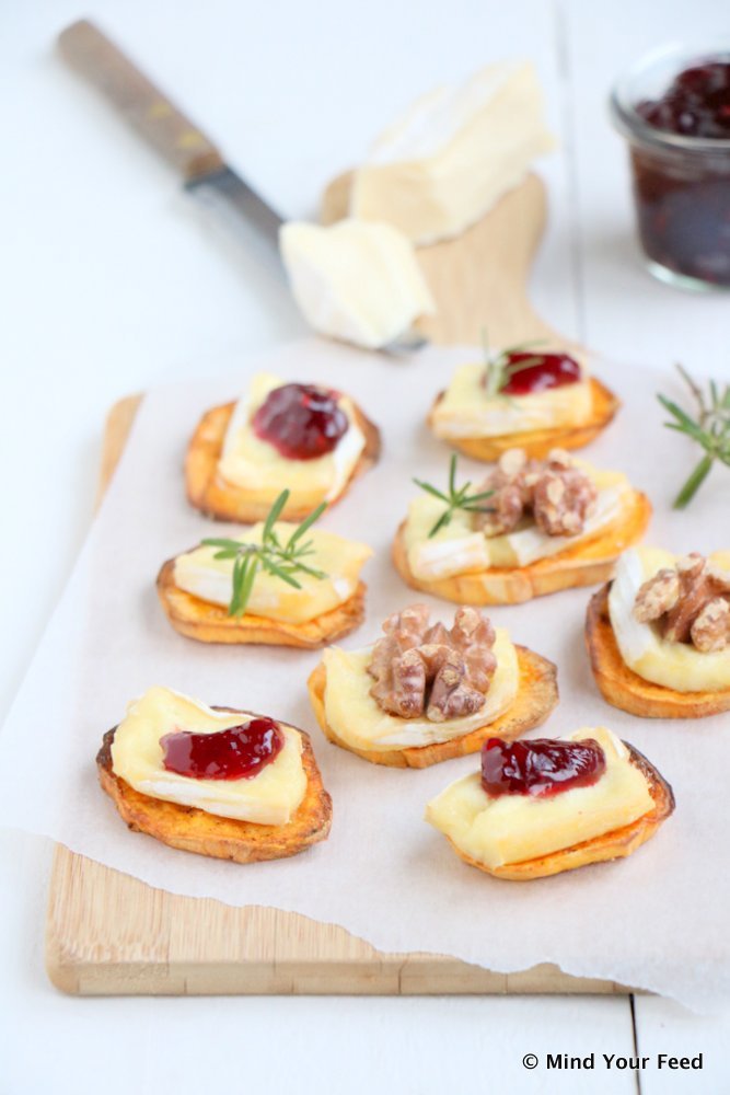 Als het om borrelhapjes gaat, dan vind ik het leuk om zoveel mogelijk verschillende dingen op tafel te zetten. De ene hap wat gezonder dan de andere, maar allemaal even lekker. Natuurlijk mag een stokbroodje met wat smeerseltjes niet ontbreken, maar het is wel zo leuk om nog even de keuken in te duiken. In deze laatste dagen van het jaar deel ik nog een paar makkelijke borrelhap-recepten met je. Omdat ik dol ben op kaas – #understatement – maakte ik deze zoete aardappel toastjes met camembert klaar. Lekker met een likje zoetigheid on top. Super simpel, maar zo lekker!