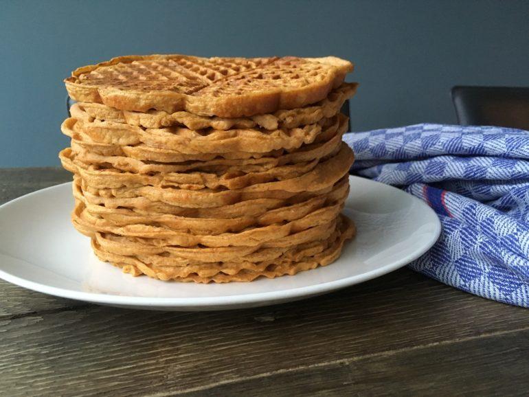 Wij houden enorm van pannenkoeken! Vooral deze proteïne pannenkoeken zijn echt een favoriet recept. We maken graag een grote stapel zodat we de hele week door komen met deze lekkere snacks. Maar daar zit dus wel een nadeel aan; een flinke stapel pannenkoeken bakken kost namelijk ook flink wat tijd! Om wat sneller te kunnen bakken schaften we een wafelijzer aan en guess what: veel sneller! Onze duik de keuken in voor zoete aardappel wafels was een geslaagd experiment!