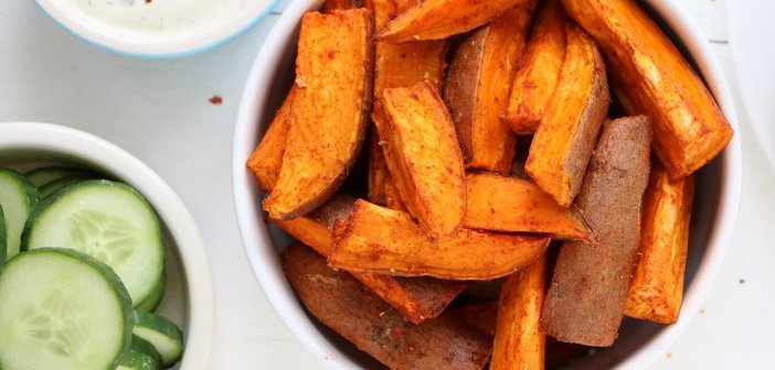Oh, alvast een dikke sorry…. Ik zit deze week nog met mijn kont in Italië en ik heb toch even het Nederlandse weerbericht gecheckt. Had ik misschien beter niet kunnen doen… Dus excuses, want van die Hollandse zomer word ik ook niet echt blij. Ik ga de zomer proberen af te dwingen door nog een lekker makkelijk recept met je te delen waar de zon misschien spontaan van gaat schijnen…. Deze zoete aardappel wedges met tzatziki zijn namelijk het perfecte bijgerecht voor een zomerse bbq met vrienden!