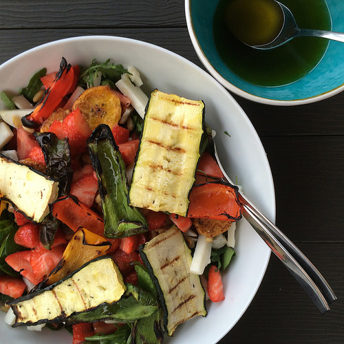 Dat gevoel werd alleen maar sterker bij het proeven van deze bijzondere salade. Geuren, kleuren en smaken komen samen. Een hap van deze salade met Bob z'n klanken op de achtergrond deed me denken aan een zomers festival, en de naam van de salade was geboren: summer festival salade. Uniek, fris en perfect voor een avond BBQ'en met vrienden. Doe mij maar heel veel van dit soort avonden =D