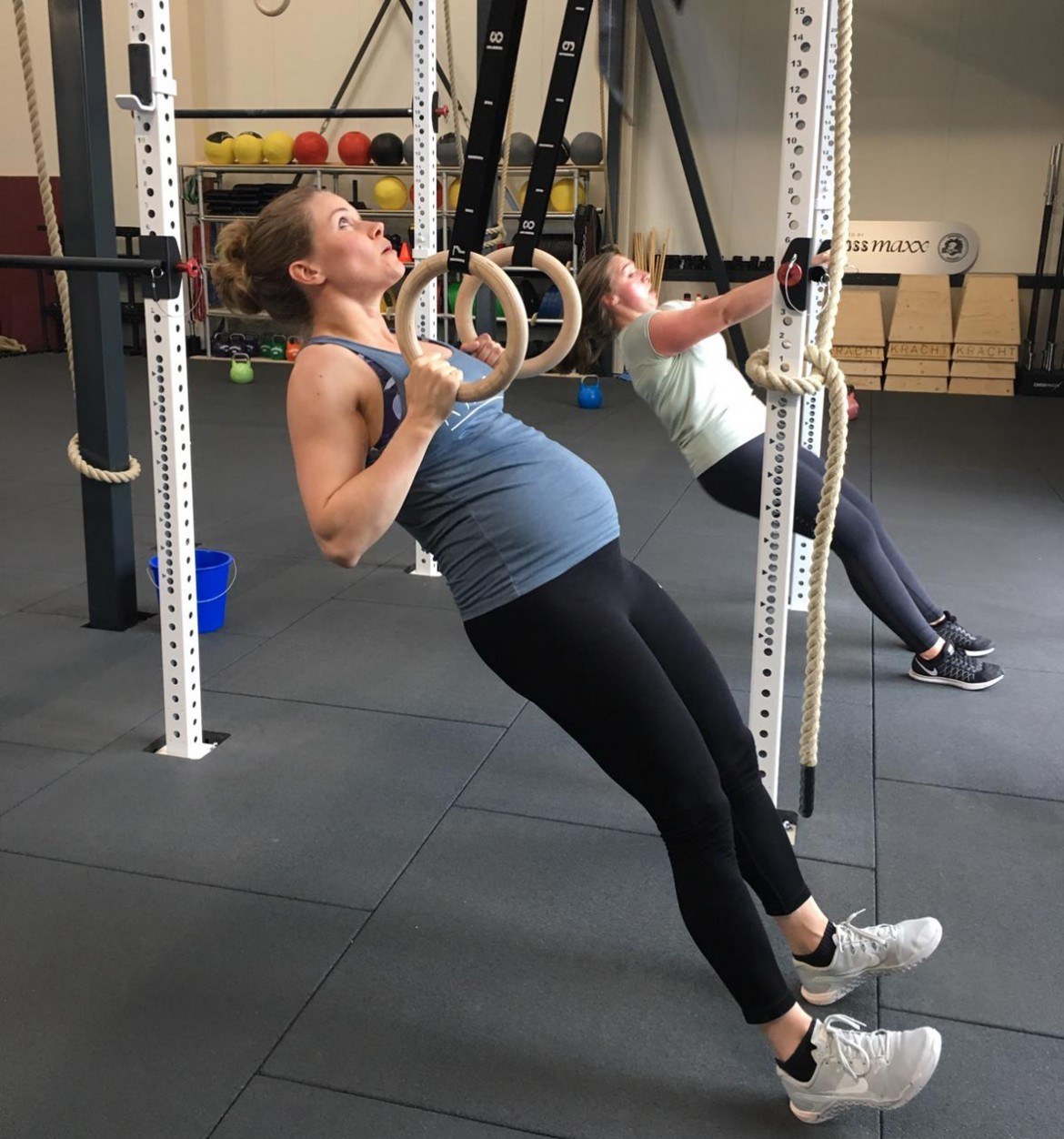 Er zijn vrouwen die tot het einde van hun zwangerschap pull-ups blijven doen, maar er zijn ook vrouwen die al bij 13 weken stoppen met pull-ups. Dit hangt samen met hoe het voor jou voelt om pull-ups te blijven doen, maar ook hoe jouw lichaam hier op reageert. Dat je heel snel geen rechte buikspieren meer mag trainen is bij de meeste vrouwen wel bekend, maar ook met andere oefeningen kan er veel spanning op je buikspieren komen te staan waardoor je last kunt krijgen van een diastase. Goede begeleiding is in mijn ogen essentieel om gezond en fit je zwangerschap door te komen. Een trainer die veel ervaring heeft met zwangerschappen kan jou namelijk goed begeleiden, goede alternatieven bieden voor oefeningen die je niet meer kunt doen en checken of jouw lichaam reageert zoals hoort. Ik deelde eerder al een checklijstje welke je kunt aanhouden, maar een ervaren trainer let er bijvoorbeeld ook op of je goed blijft ademen (je mag tijdens een zwangerschap bijvoorbeeld niet meer “bracen” (= adem vast- of inhouden) , je moet tijdens de training nog kunnen blijven praten en je mag niet na de training 20 minuten lang (bij wijze van spreken) uitgeput op de grond liggen bijkomen. Ik zou dus zeker in jouw box even navragen of er een trainer is met ervaring in het begeleiden van zwangere vrouwen. Ik heb de mazzel dat Charlotte, eigenaresse van Kracht, heel veel ervaring heeft met zwangere dames en mij dus heel goed kan begeleiden.