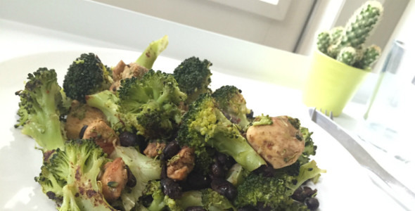 Ik was nooit zo'n bonen fan, maar door een samenwerking met Bonduelle heb ik een hele berg bonen in blik (zeker niet minder gezond en voedzaam dan "verse') gekregen. Eten weggooien doe ik natuurlijk niet, dus ging ik aan de slag met de bonen en gewoon wat uitproberen. Dit receptje met kip, zwarte bonen broccoli was echt een succes. Dus ik deel "m graag met je.
